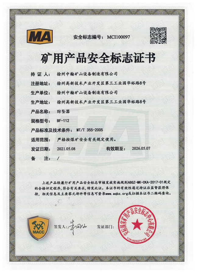 BF-0511防墜器煤安證書