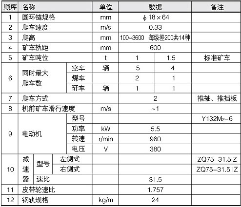 爬車機(jī)技術(shù)參數(shù)
